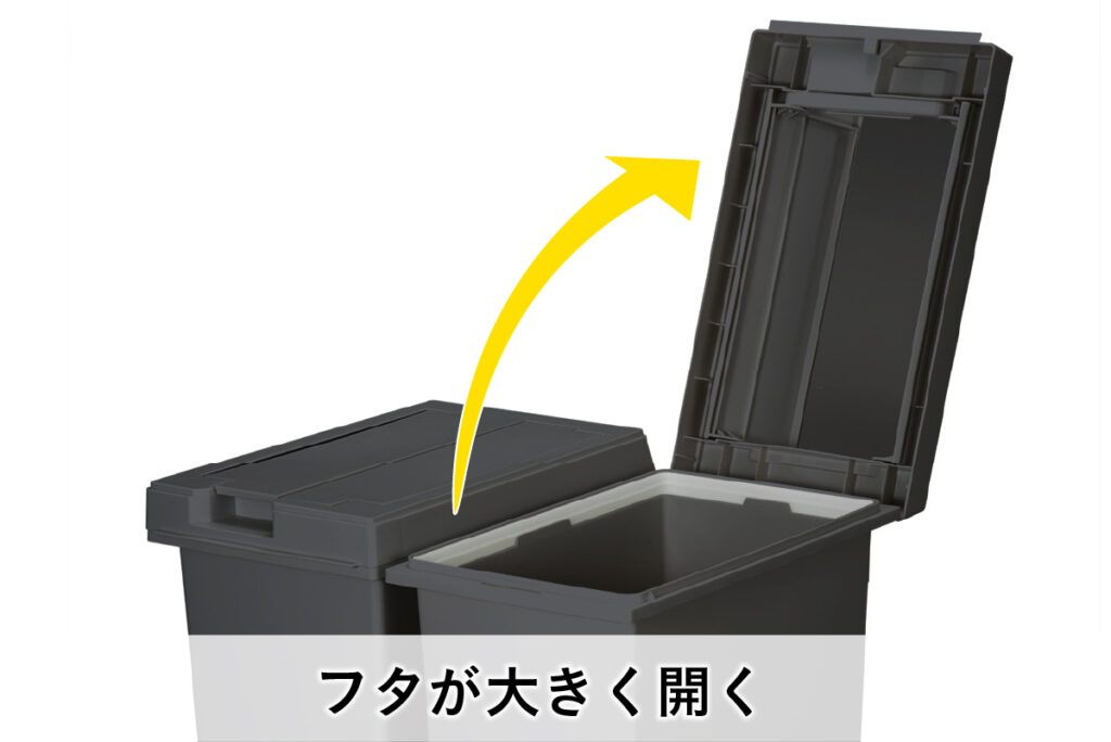 ワイドオープン。ゴミ袋の交換がしやすい設計。
