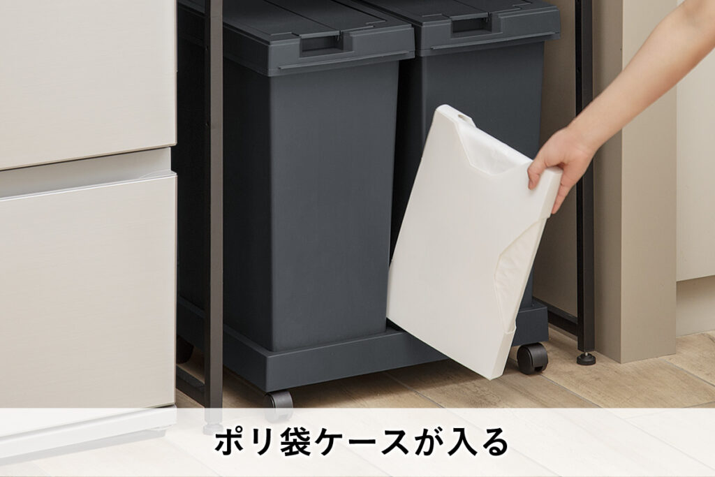 ポリ袋交換をスムーズに。ポリ袋ケースが収納できるポケット付き。